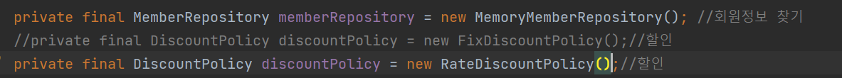 return new OrderServiceImpl(new MemoryMemberRepository(),new FixDiscountPolicy());